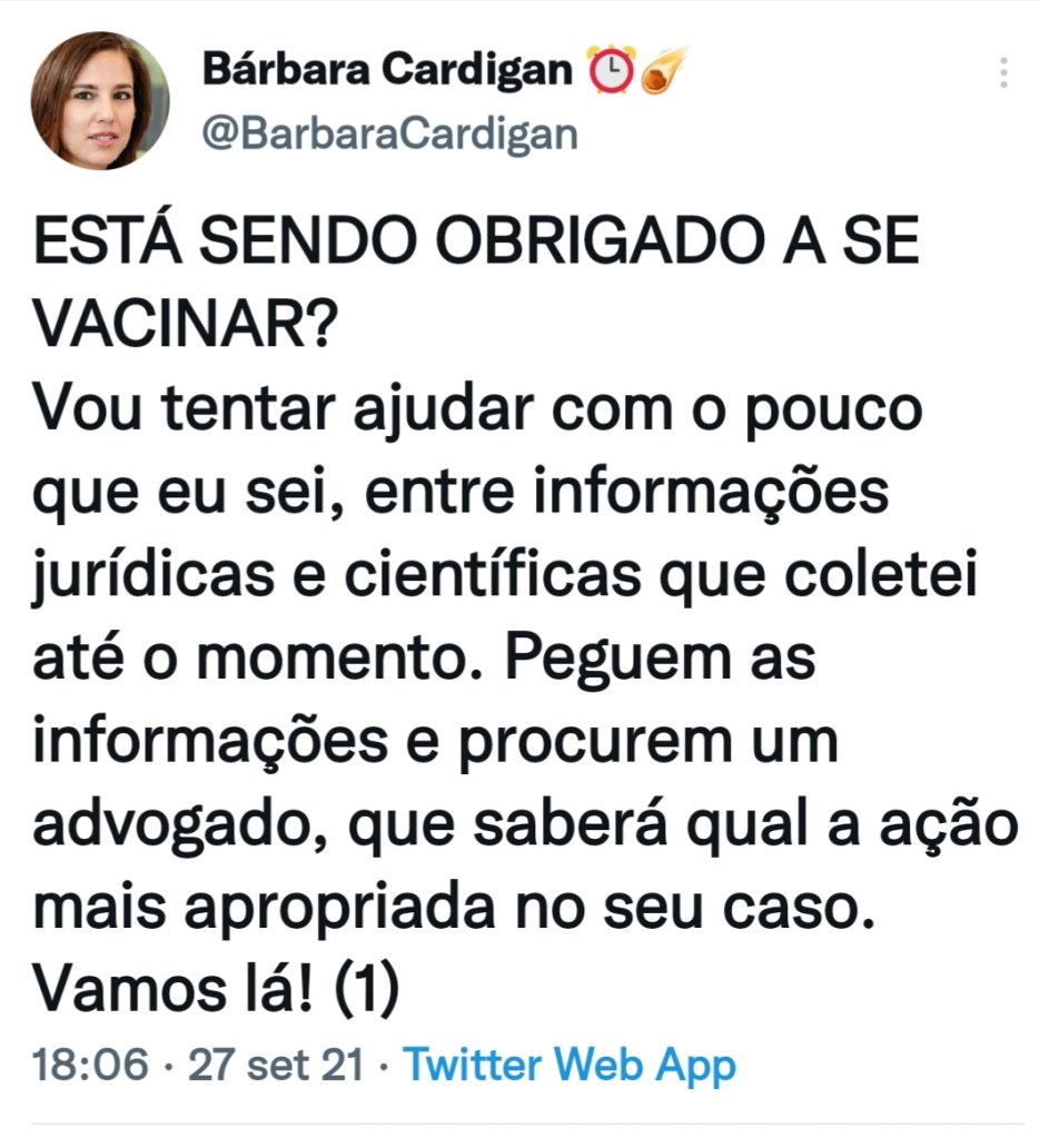 E eis que nos deparamos com a situação da tentativa de imposição do Passaporte Sanitário.